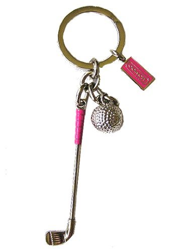 Product Description4.5" (L) (included ring). Silver Golf Club With Pink Handle. Textured Silver Golf Bag. 1.25" Split Nickel Key Ring. Small Coach Pink Enamel Embossed Hangtag |